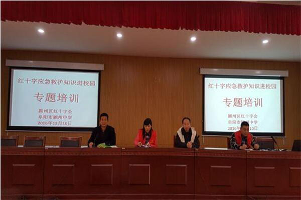 为加强学校应急管理,帮助广大师生更好的掌握应急救护基本知识和技能,提高应对突发事件的应急处置能力,12月10日,颍州区红十字会为颍州中学的老师们举办了为期一天的应急救护知识培训。