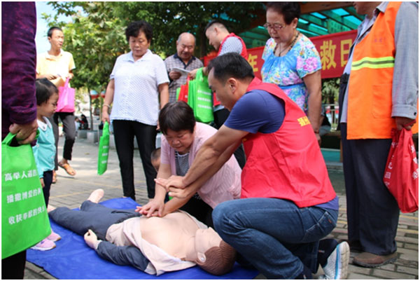 为大力宣传普及急救知识,提高群众自救互救能力,9月9日,颍州区红十字会在安居工程广场举办了2017年“世界急救日”主题宣传活动。