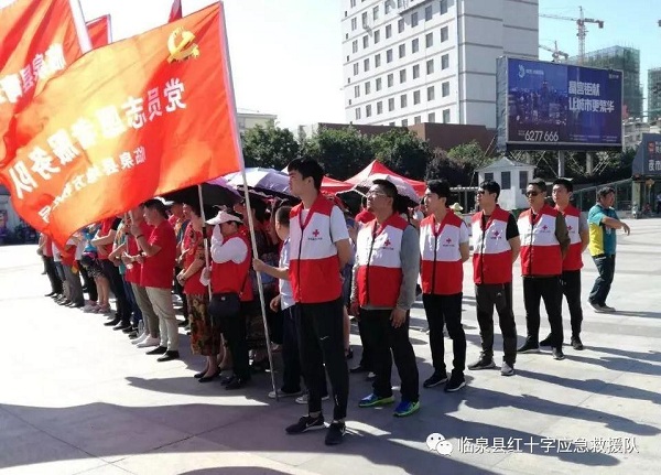 6月12日上午,临泉县红十字应急救援队的队员们来到姜子牙文化广场参加大型献血活动。活动中,宣传部部长徐红艳同志、县红会常务副会长李锐同志号召志愿者们要推动无偿献血工作,消除市民对无偿献血的偏见及认识误区,加强市民对无偿献血的意义与作用的理解,提高群众参与无偿献血的热情。
