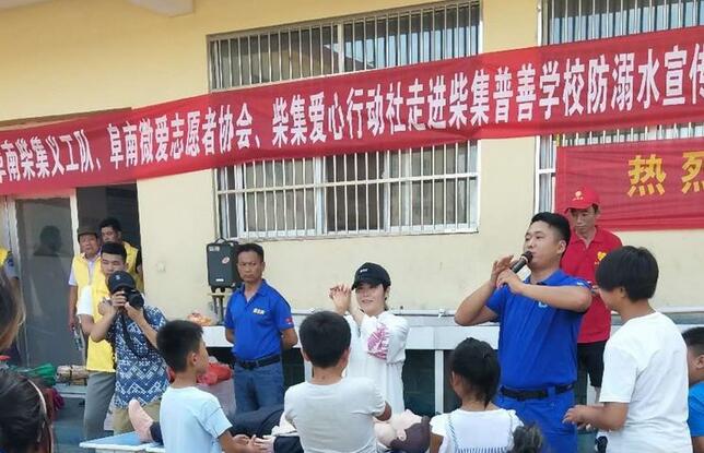 6月25日,阜南县红十字会联合蓝天救援队、义工服务队、微爱志愿者协会,去柴集镇普善学校开展暑期防溺水宣传活动。