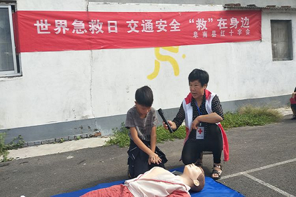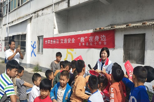 为纪念第十九个“世界急救日”,让更多的人掌握急救技能,在突发事件来临之际挽救生命和降低伤害的程度,9月7日上午,阜南县红十字会在中岗镇回民小学开展了“交通安全‘救’在身边”活动。